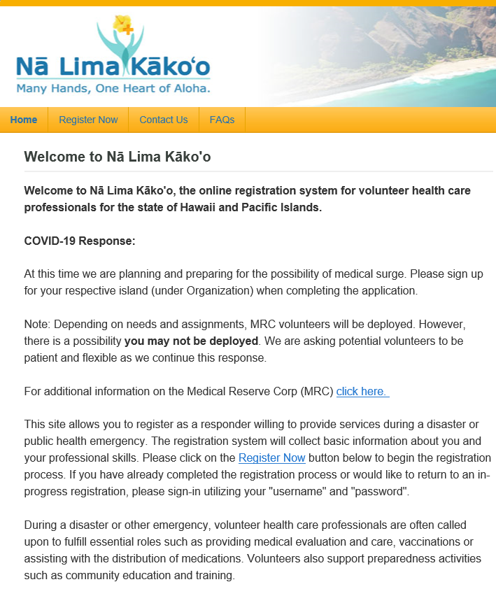 Register via the Nā Lima Kāko'o online registration system using this link: https://www.nlk.doh.hawaii.gov/